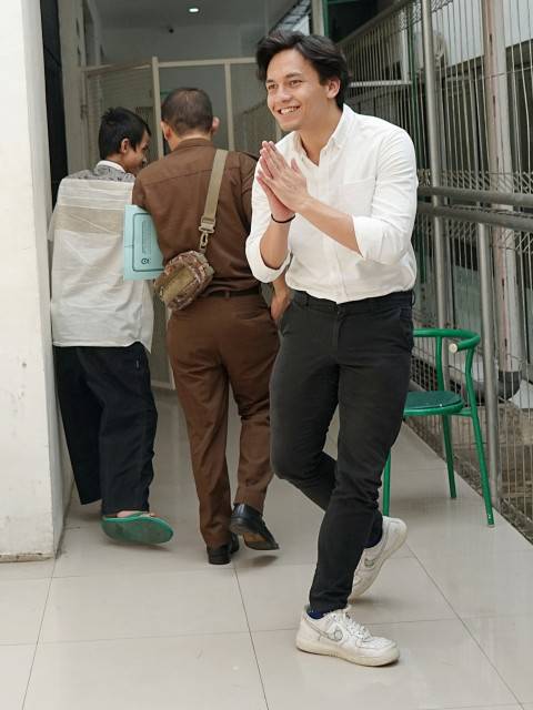 Setelah turun dari mobil tahanan, aktor 20 tahun ini menyempatkan diri buat menyapa serta berkenalan dengan para penggemarnya.