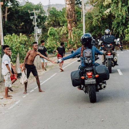 Prisia mengendarai Honda Rebel dengan mesin 500 cc. Bersama sejumlah kawan ia taklukkan medan-medan sepanjang Labuan Bajo hingga Larantuka.